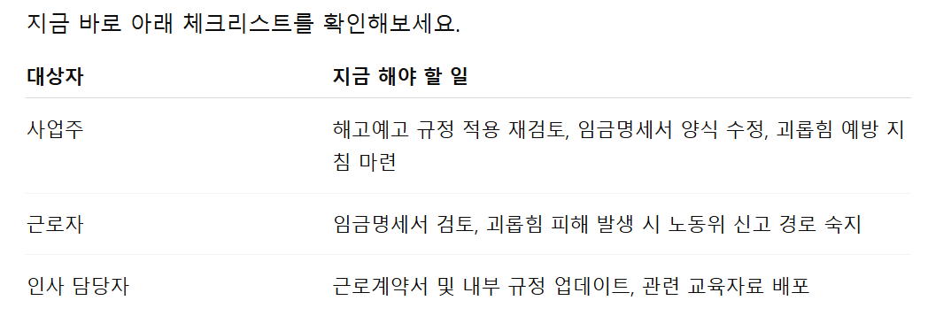 한국노동연구원의 김정우 노무사는 “이번 개정은 단순한 규정 변경이 아니라, *현장에서 실질적으로 일어나는 문제들을 정면으로 다뤘다는 점에서 의미가 크다”고 평가했습니다.