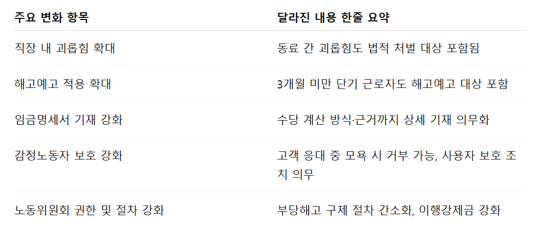 2025년 근로기준법 개정은 단순한 형식 변경이 아닙니다. 이제는 동료 간 괴롭힘도 관리되고, 임금의 투명성이 확보되며, 고객의 폭언에도 대응 거부가 가능해졌습니다.