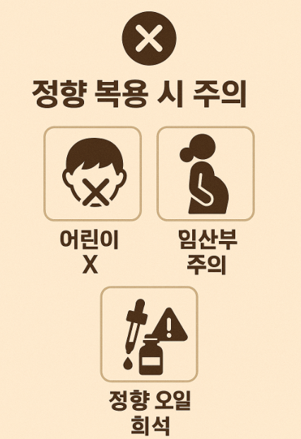 정향은 강력한 성분을 가진 만큼 아래 사항에 주의해야 합니다.