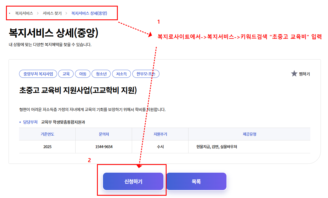 | 신청 방법 | 복지로 또는 교육비 원클릭 시스템, 읍면동 주민센터 |
