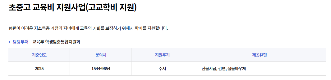 | 지원 대상 | 초중고 재학생 및 가구의 보호자 |