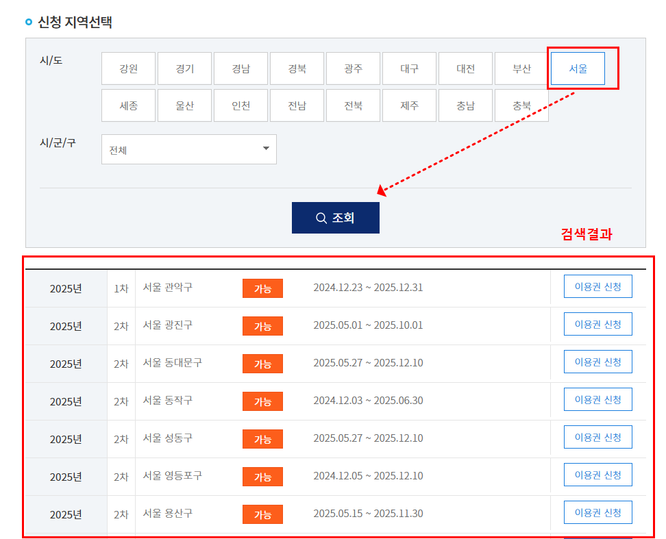 신청지역 조회 방법