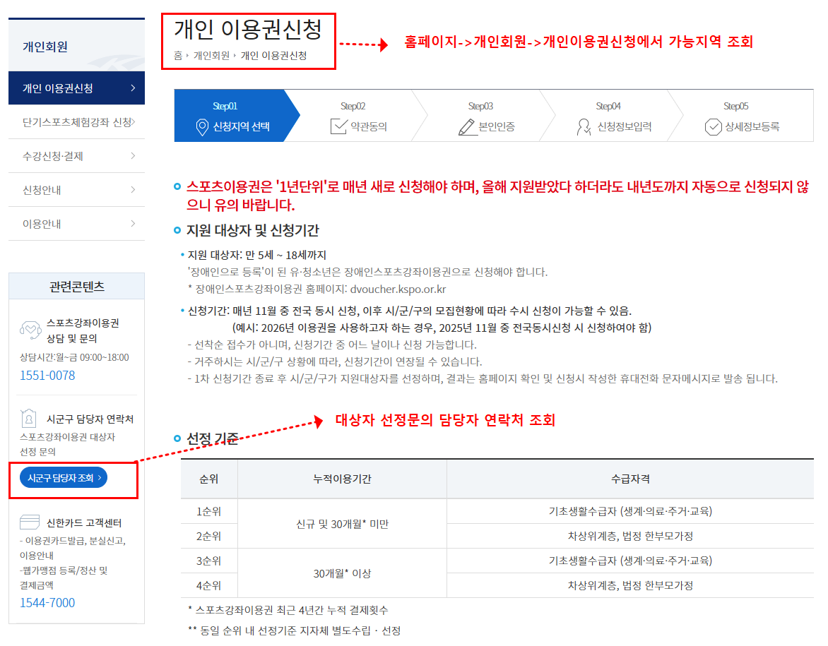 - 거주지 주민센터 또는 구청 체육업무 담당부서 방문