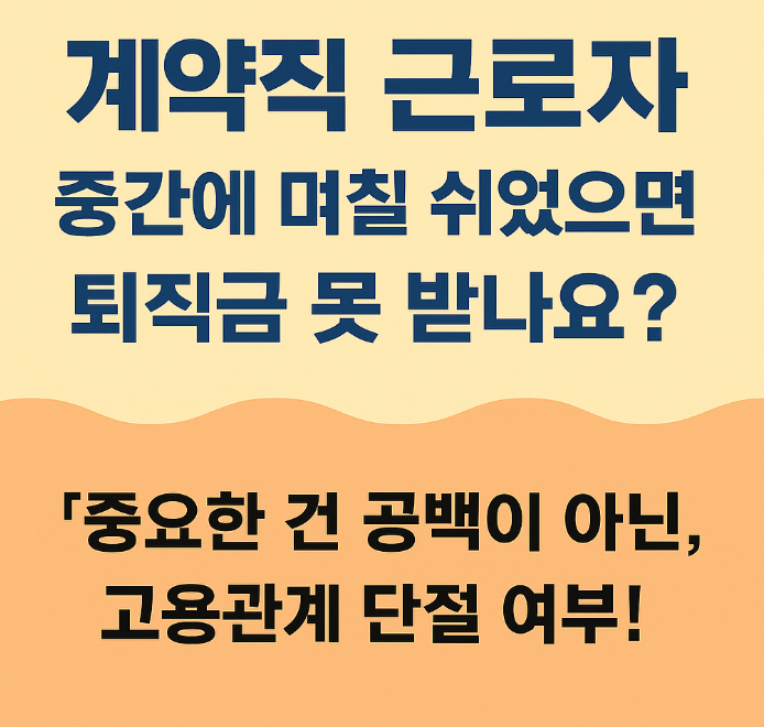 중간에 계약이 잠시 끊겼더라도, 실제로는 같은 회사, 같은 업무, 같은 조건으로 계속 일했다면 퇴직금 지급 대상이 될 수 있습니다.