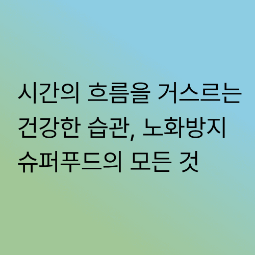 우리는 누구나 활기차고 건강하게 오래 살고 싶어 합니다. 늙어가는 것을 완전히 멈출 수는 없지만, 일상에서 아주 작은 습관 하나만 바꿔도 그 속도를 늦출 수 있다는 사실, 알고 계셨나요? 그 비밀의 열쇠는 바로 우리 식탁 위에 있습니다. 오늘은 '노화방지 슈퍼푸드'에 대한 흥미진진하고 유익한 이야기를 풀어보려 합니다. 과학적인 근거와 함께 독자 여러분의 식탁을 풍요롭게 만들 음식 정보, 지금 바로 시작합니다!